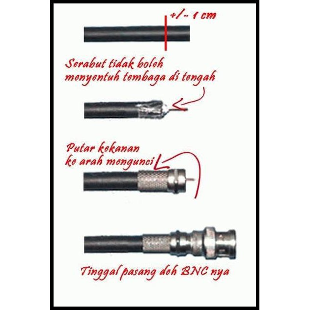 Inti kabel kemudian dilapisi sekat isolator dan dililit dengan penghantar berupa kabel serabut yang dibuat dari bahan tembaga atau alumunium sebagai penghantar bagian luar. Merupakan kabel berwarna hitam dengan inti berupa kabel serabut. Nama nama dari semua jenis kabel tersebut memang sedikit mirip sehingga agak sulit untuk membedakannya. Merupakan kabel koaksial berdiameter rata rata 5mm yang berwarna gelap dan banyak digunakan dikalangan radio amatir.