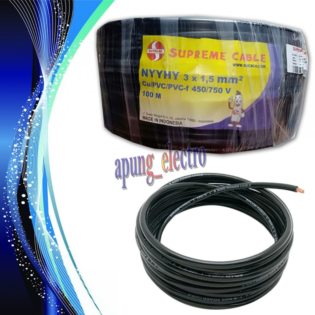 Status harga masih update harga include ppn hubungi kami untuk permintaan faktur pajak kami berkomitmen untuk turut mendukung kestabilan harga elektrikal dalam rangka antisipasi perlambatan ekonomi akibat covid 19 tidak mengambil kesempatan dalam kesempitan disaat barang sedang langkah kosong kabel listrik supreme nya 1x1 5 100 meter rp 209 000 supreme. Biasa digunakan di dalam instalasi listrik rumah tinggal. Supreme nym 2 x 2 5. Kabel dengan pembungkus hitam untuk outdoor hy.