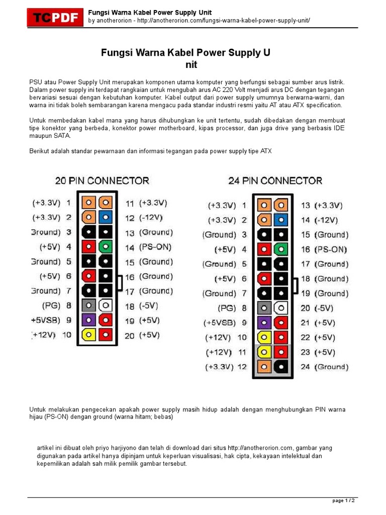 Fungsi masing masing warna kabel pada power supply. Warna orange 3 3v berfungsi sebagai catu daya di processor. 1 set kabel yang tadi kita potong panjang berwana merah kuning dan 2 buah kabel hitam kita solder ke terminal kabel dengan urutan. Konektor ini terdiri dari 2 bagian.